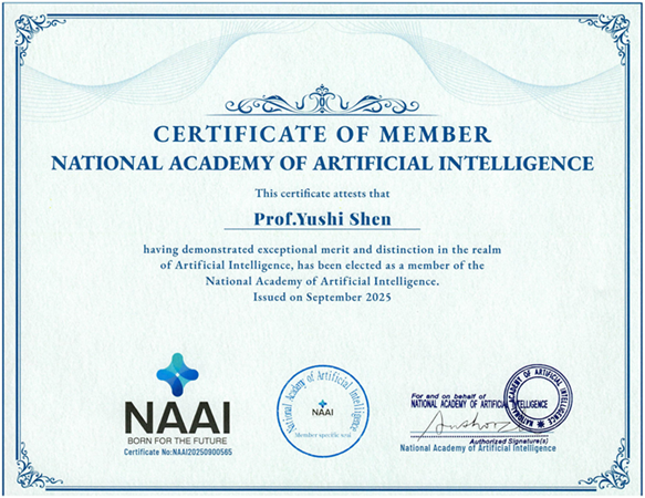 沈寓实当选美国国家人工智能科学院院士证书